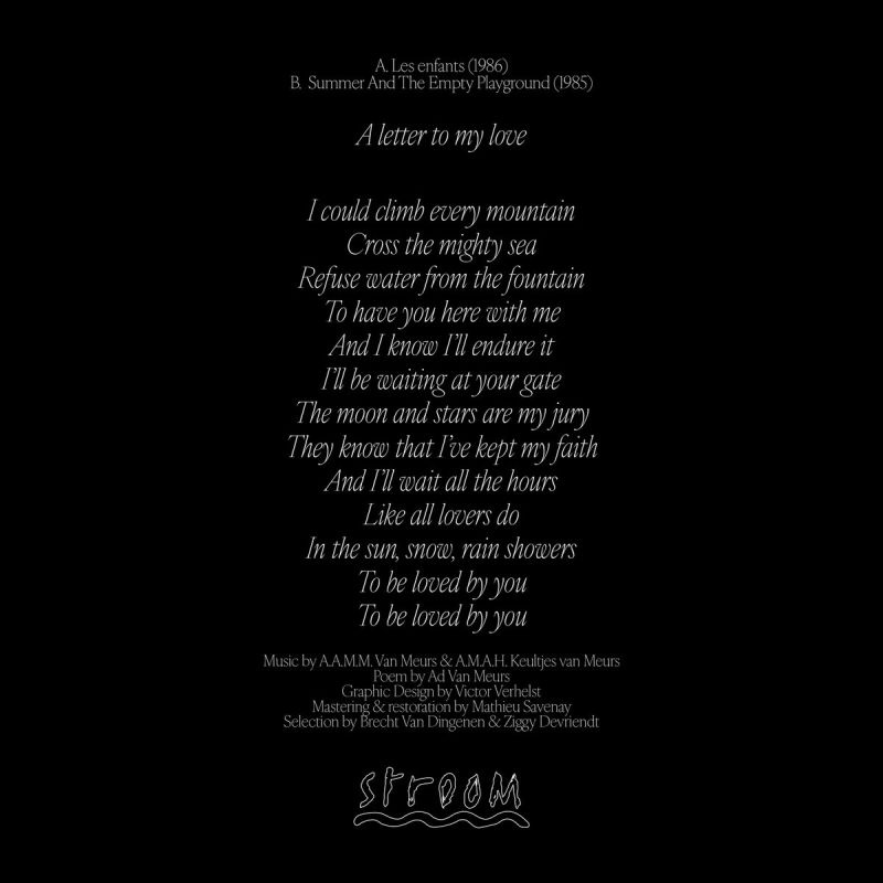 "I could climb every mountain. Cross the mighty sea. Refuse water from the fountain. To have you here with me. And I know I'll endure it. I'll be waiting at your gate." A liminal love message between Ad & Frankie from W.A.T.. Both folk country'ish songs made in the mid 80's".