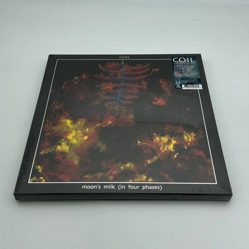 First compiled as a double CD in 2002, Moon's Milk (in Four Phases) is a suite of four EPs that Coil released seasonally via their in-house Eskaton imprint across 1998. The line-up for these sessions were John Balance, Peter "Sleazy" Christopherson, Drew McDowall, and William Breeze. Recorded primarily at their home studio in Chiswick, London on the eve of a permanent relocation to the small seaside town of Weston-Super-Mare, the collection has long loomed as a pivotal and pinnacle work in the group's discography, but has never been officially reissued, or repressed on vinyl. Time has only ripened its tapestry of regal strangeness. Arranged sequentially in tribute to the equinoxes and solstices, Moon's Milk captures Coil at a revelatory crossroads, leaning deeper into improvisation, spontaneity, and sound design. "Moon's Milk or Under an Unquiet Skull" initiates the proceedings on Spring Equinox, a two-part netherworld organ séance woven from vocal drones, cathedral keys, seasick strings, and opiated undertow. From there, Summer Solstice skews lighter but no less incantational, with Balance embracing his voice-as-instrument across lucid dream torch songs ("Bee Stings"), purgatorial spoken word ("Glowworms/Waveforms"), sultry chamber pieces ("Summer Substructures"), and falsetto ravings ("A Warning From The Sun (For Fritz)"). Autumn Equinox exudes more of a pensive and twilit mood, from the Rose McDowall-sung folk ballad "Rosa Decidua" ("I hear your voice sing near to me / I've put away the poisoned chalice (for now) / And lie down amongst the flowerbeds") to hall-of-lords hallucination "The Auto-Asphyxiating Hierophant" to the liminal string-plucked classic "Amethyst Deceivers," featuring excellent alien guitar by Breeze layered with Balance's oft-quoted couplet: "Pay your respects to the vultures / For they are your future." The album's final chapter, Winter Solstice, is its most swooning, remote, and ceremonial. Opener "A White Rainbow" stirs strings, layered choral vocals, and shivering rhythm into an imploding burial hymn. "North" oscillates bleakly, a ghost in the machine murmuring opaque prophecy ("This black dog has no owner / This black dog has no odour"), while "Magnetic North" is its inverse, a guided meditation of gently flickering software and surreal chakra poetics ("Red rose filling the skull / Yellow cube in the lower pelvis / Silver moon crescent below the navel"). The suite fades to grey with a traditional English carol ("Christmas Is Now Drawing Near"), rendered like an executioner's song by Rose McDowall's doomed, beautiful voice. The Dais box set includes the entirety of the rare Moon's Milk Bonus Disc CD-R / 2019 Threshold Archives Copal CD, which includes three collaborations with Thighpaulsandra. This material is as rich and intoxicating as the previous four phases, ranging from electro-acoustic singing bowl rituals ("Copal") to dissonant electronic recitations of visionary Angus MacLise poetry ("The Coppice Meat") to ominous classical melancholia ("Bankside"). Once again, Coil confirm the vastness of their confounding, infinite alchemy, explored and refined across decades of experimentation - both sonic and bodily. From postindustrial to post-everything, theirs is an art untethered, in the wilds of its own design.