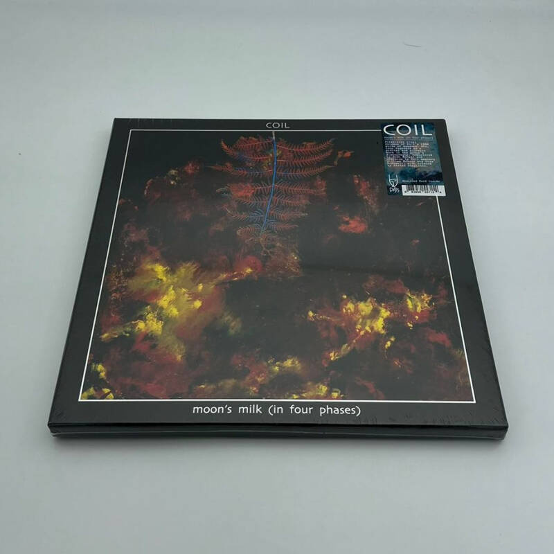 First compiled as a double CD in 2002, Moon's Milk (in Four Phases) is a suite of four EPs that Coil released seasonally via their in-house Eskaton imprint across 1998. The line-up for these sessions were John Balance, Peter "Sleazy" Christopherson, Drew McDowall, and William Breeze. Recorded primarily at their home studio in Chiswick, London on the eve of a permanent relocation to the small seaside town of Weston-Super-Mare, the collection has long loomed as a pivotal and pinnacle work in the group's discography, but has never been officially reissued, or repressed on vinyl. Time has only ripened its tapestry of regal strangeness. Arranged sequentially in tribute to the equinoxes and solstices, Moon's Milk captures Coil at a revelatory crossroads, leaning deeper into improvisation, spontaneity, and sound design. "Moon's Milk or Under an Unquiet Skull" initiates the proceedings on Spring Equinox, a two-part netherworld organ séance woven from vocal drones, cathedral keys, seasick strings, and opiated undertow. From there, Summer Solstice skews lighter but no less incantational, with Balance embracing his voice-as-instrument across lucid dream torch songs ("Bee Stings"), purgatorial spoken word ("Glowworms/Waveforms"), sultry chamber pieces ("Summer Substructures"), and falsetto ravings ("A Warning From The Sun (For Fritz)"). Autumn Equinox exudes more of a pensive and twilit mood, from the Rose McDowall-sung folk ballad "Rosa Decidua" ("I hear your voice sing near to me / I've put away the poisoned chalice (for now) / And lie down amongst the flowerbeds") to hall-of-lords hallucination "The Auto-Asphyxiating Hierophant" to the liminal string-plucked classic "Amethyst Deceivers," featuring excellent alien guitar by Breeze layered with Balance's oft-quoted couplet: "Pay your respects to the vultures / For they are your future." The album's final chapter, Winter Solstice, is its most swooning, remote, and ceremonial. Opener "A White Rainbow" stirs strings, layered choral vocals, and shivering rhythm into an imploding burial hymn. "North" oscillates bleakly, a ghost in the machine murmuring opaque prophecy ("This black dog has no owner / This black dog has no odour"), while "Magnetic North" is its inverse, a guided meditation of gently flickering software and surreal chakra poetics ("Red rose filling the skull / Yellow cube in the lower pelvis / Silver moon crescent below the navel"). The suite fades to grey with a traditional English carol ("Christmas Is Now Drawing Near"), rendered like an executioner's song by Rose McDowall's doomed, beautiful voice. The Dais box set includes the entirety of the rare Moon's Milk Bonus Disc CD-R / 2019 Threshold Archives Copal CD, which includes three collaborations with Thighpaulsandra. This material is as rich and intoxicating as the previous four phases, ranging from electro-acoustic singing bowl rituals ("Copal") to dissonant electronic recitations of visionary Angus MacLise poetry ("The Coppice Meat") to ominous classical melancholia ("Bankside"). Once again, Coil confirm the vastness of their confounding, infinite alchemy, explored and refined across decades of experimentation - both sonic and bodily. From postindustrial to post-everything, theirs is an art untethered, in the wilds of its own design.