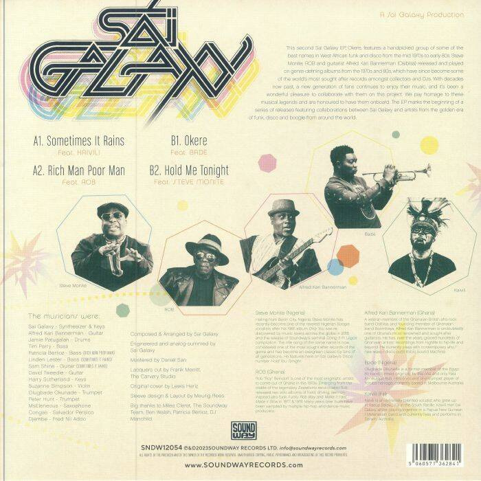The star-studded Sai Galaxy project returns, bringing together West African legends Steve Monite and Rob with multi-instrumentalist Simon Durrington, guitar maestro Alfred Bannerman and Egypt 80 trumpet player Bade for a second EP of vital Afro-disco and soul.