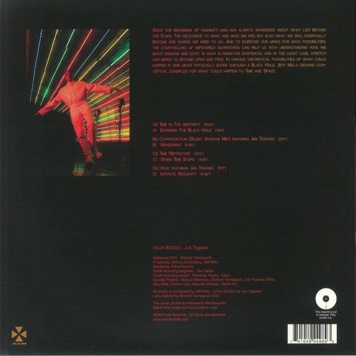 Jeff Mills throws a spaghettifying curveball with latest EP 'The Trip'. Themed after the terrifying notion of entering a black hole, and likening this to the vicarious yet no less enjoyable illusions of grandeur that might go hand in hand with attending a Millsart rave, 'The Trip' has been routinely billed as "the world's first cosmic opera" (in its performance incarnation), and attempts to sonically answer the question as to what exactly happens when we cross that fateful event horizon, in ambitious, live-jam-born-recorded form. Via eight cosmic suites of terrifying techno wizardry (we'd expect nothing less from the Belleville 'blazer), Jeff Mills brings his originally live, light-eating vision to vinyl, nailing the cosmick perceptual horror of being "sucked in" through dust-bitten repetitions, descending mind-melts and dissociative-detuned fugues - the latter is most intriguing; 'When Time Stops' is the track of choice for exploring Mills' least repetitious and most improvisatory tendencies.