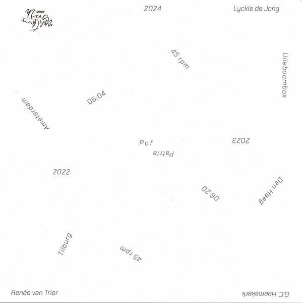 Fold-over cover card. Plain white labels, with Dymo label reading "pof" hand-pasted onto the A-side. Home brewed avand garde-ism from Amsterdam. Ltd 7"