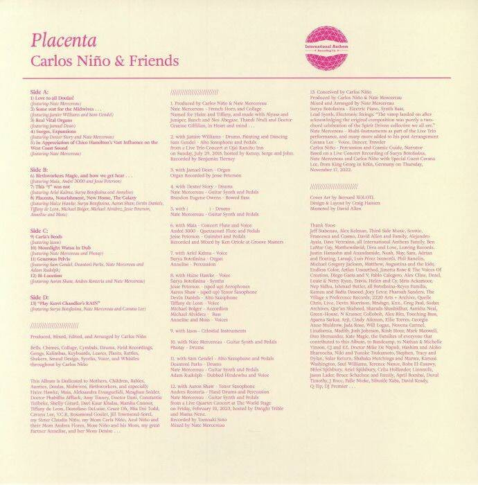 "Placenta" is announced on the 1st solar return of Moss Niño, of whom Carlos and his partner Annelise are Earth parents. Their experience of pregnancy, labor and delivery were all profoundly impactful for Carlos. Becoming a father again (a whole 25 years after the birth of Azul Niño, who has become a regular artistic collaborator for Carlos) he felt total Inspiration for this set of recordings, and hence it is perhaps the most conceptually-grounded Carlos Niño & Friends album we've yet to present–fully connected to the spirit of family, birth, and "how we get here."