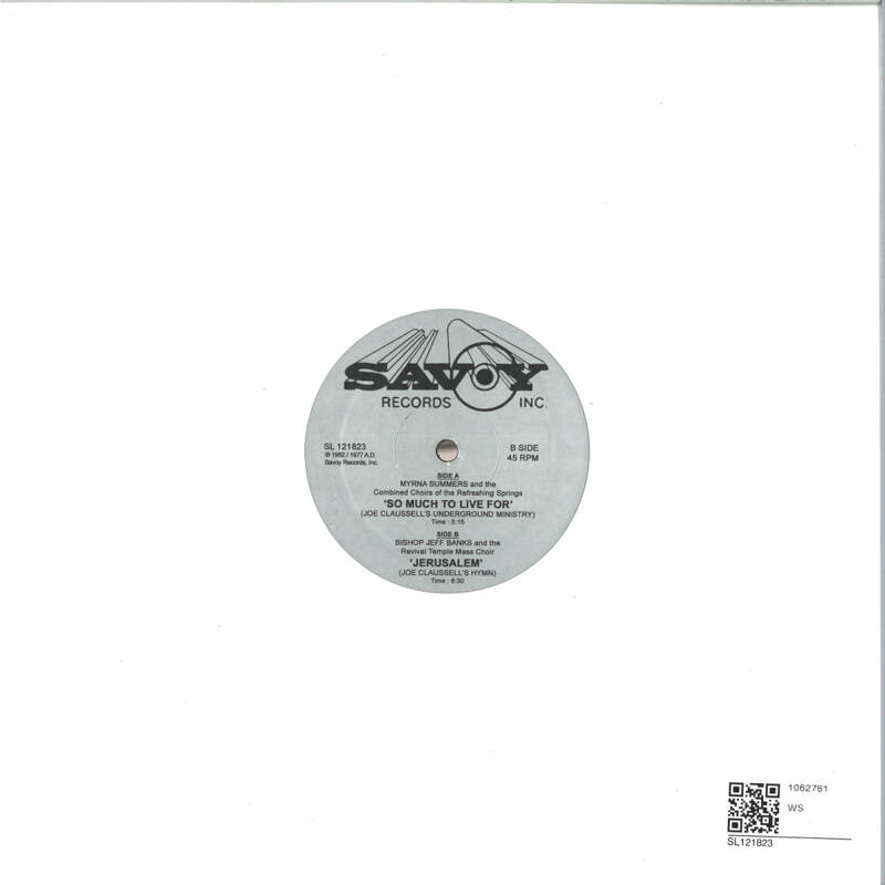 After a long hiatus from his world of Edits & Overdubs, Joaquin Joe Claussell brings you this Limited Edition 12" sampler taken from the forthcoming Joe Claussell "Praise" 6xLP box set. Joe raids the vaults of the legendary Savoy Records, the Strictly Rhythm of Gospel music! On the A-Side he takes the mid-tempo stomper 'So Much to Live For' by Myrna Summers and invokes the holy ghost, fortifying the drums and rearranging the vocals so you are left humming the chorus long after it has ended. The hook 'So Much to Live For' in itself sums up all of the 'Praise' series, a cry to instill hope and meaning in what is often perceived as the mundane of daily life. On the flip is a previously unreleased Joe Claussell take of 'Jerusalem' by Bishop Jeff Banks. Here the sermon takes off right from the jump, a floor filling call and response four to the floor version finished in classic Claussell style. Wailing organs, driving percussion and vocals that will make you want to jump out of your skin. Both sides cut LOUD at 45RPM! One press and gone forever.
