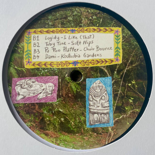 The symbol on side A is a more than 3000y old Chinese letter signifying "dance", probably a shamanic dance for the gods or a rain dance. The illustrations on side B are both from France, the menhir is the "Dame de Saint Sernin" and the bison "de la Madeleine". Picture in the background was taken in Yakushima, a southern island in Japan that is the model for Gibli's Princess Mononoke. Concerning the music, take a break and relax.
