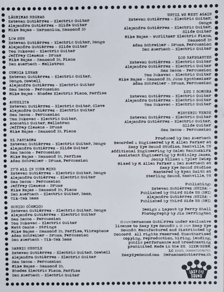 Sonido Cosmico finds the duo of Hermanos Gutierrez embark on a journey that eschews the traditional boundaries of instrumental music. Each track within this collection forms a rich tapestry that blends Latin rhythms with ethereal atmospheres to craft wordless narratives where the brothers' transcendent guitars speak their own eloquent language. The musicians each exhibit a subtle sophistication as they merge elemental and experimental elements that, while deeply rooted in their Latin heritage, showcase a contemporary execution that is both nuanced and expansive. As such the record shows the band's evolving artistry and bridges gaps of age and geography through music.