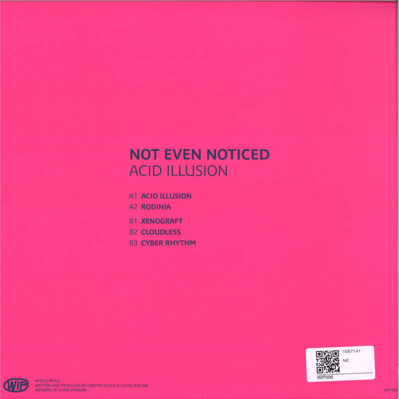 Frankfurt-Am-Main artist Not Even Noticed keeps the legacy of their city alive in the throbbing, trancey acid tones which come coursing through 'Acid Illusion' - the title track from their new EP. If that track sounds like a Harthouse classic given a shot of electro in the drum lines, 'Rodinia' comes on with melancholy trance leads that could easily have emerged on Eye Q back in the day. For all the past references, there's plenty of freshness in the production to make this record stand up and stand out, not least when we diverge to the reflective electro-acid of 'Xenograft'.
