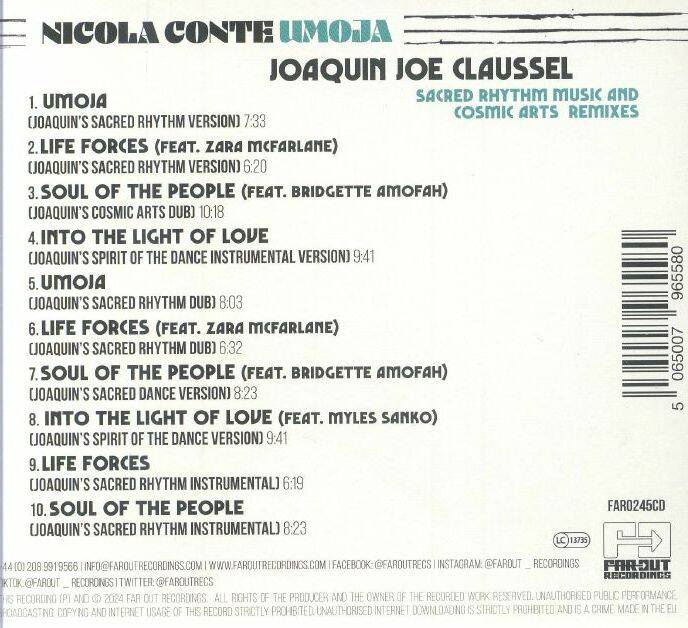 It's not often that jazz guitarists and bandleaders double up as DJs and producers, but neither is Nicola Conte the kind of person one often encounters. Here the Italian multi-talent proffers a new version of his latest spiritual jazz-house opus, Umoja. This record first came to be as a full-length 4x4 dance LP of serene, danceable tropicalias and sports-whistly whorls. They now come reincarnated, karmically re-endowed with the thermal force of an eagle, by way of an album's worth of reworks by the veteran producer's vim of fellow spiritual house height-scaler and abseiler, Joaquin Claussell. Whether invoking the exquisite voices of Stefania Dipierro or channelling the patent inspirations of Lonnie Liston Smith of Gary Bartz, Conte Conte-nues to propose endless Conte-nuations of his sound; all it takes is a little help from one's friends to evoke a sacred dance, a sonic world-spirit.