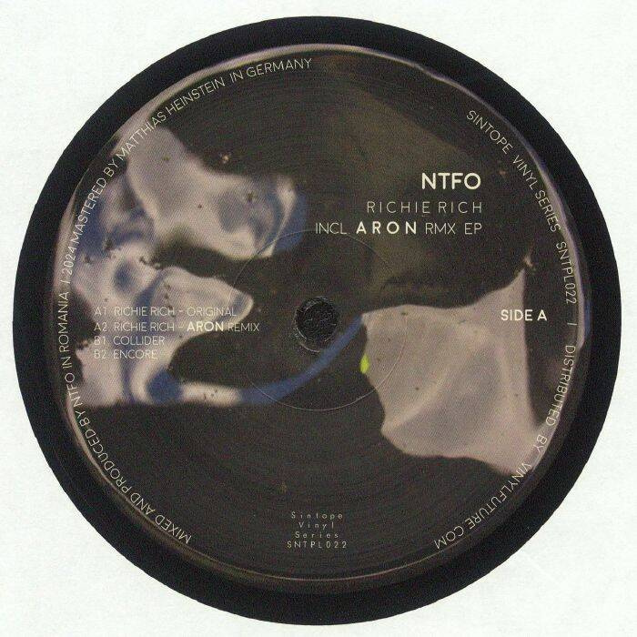 NTFO is back with more of that dance floor goodness on the Sintope Vinyl Series and kicks off this one with 'Richie Rich'. It's a future vibe with spoken words adding intrigue to the bumping tech beats. Swiss talent Aron steps up to remix and does so by layering in a brilliantly flabby bassline and locking you into a hypnotic groove. 'Collider' then brings more lightness with a skippy rhythm and nice lively snares over balmy pads. Closer 'Encore' brings a final flourish of intergalactic synth work and rueful atmospheres over sleek and stylish drums.