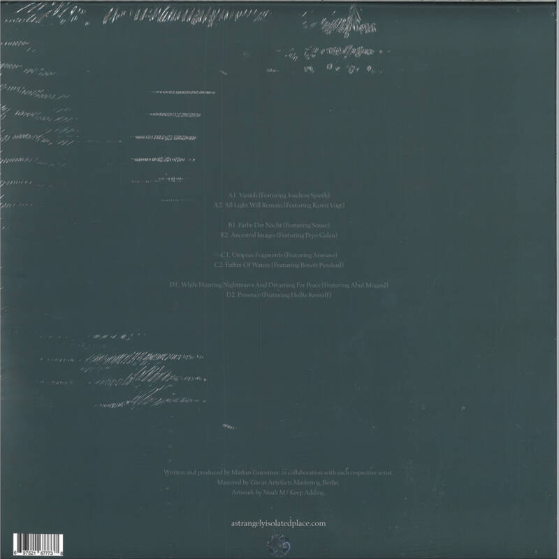 A master of synthesis, Arovane delivers a powerful display of supercharged electronics and coils of energy on ‘Utopian Fragments’. Benoît Pioulard's renowned expertise with guitars and tape distortion become a perfect counter to the electronics of Markus, blending styles seamlessly on ‘Father Of Waters’.