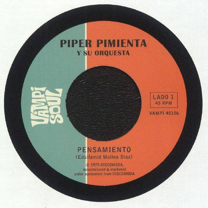 Early Fruko collaborator and member of Discos Fuentes’ supergroup The Latin Brothers, Piper Pimienta was a renowned salsa singer and composer (and talented dancer!). Following his Fuentes period, he released several records on Venezuela’s Discomoda label. ‘Pensamiento’ is a killer Latin funk cut that was included on the 1979 album “La Fuente” by Piper Pimienta y su Orquesta and has never been available on a 45 before.