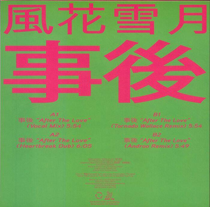 After seeing her cover of Mariya Takeuchi's "Plastic Love" flying off the shelves (earlier on BLESSYOU0021), Xiaolin is back with another cover version, this time a refreshing take on Hong Kong 80's pop starlet icon Prudence Liew's work - "Afterwards" - originally released in 1990. Xiaolin prepares another tasty recipe for the ear, clearly exposing her seasoned studio knowledge which serves as the foundation over which her powerful vocals can shine. If that wasn't enough, this release also comes with a Dub version and two remixes by non other than Tornado Wallace and Androo. A very generous package - hard to go wrong here, buy on sight.