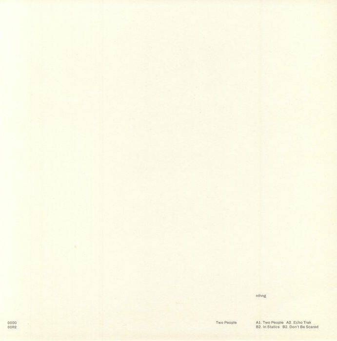 Ever reticent contemporary ambient techno artist Nthng shares 'Two People', their latest EP to hit the shelves. Building on their always wordless sound - one native to a certain "mysterious" corner of the techno world, one that implies that words are insufficient in capturing both breadth and depth of sound - 'Two People' is a minimally stirring EP, one that relies on the bare associations of just two visual indicators of theme: snow, unity. Imprinted on the planar white surface shown on the front cover is a lowercase trace of the title track, which, in sound, hears a vocal recollective of a baby's gurgle, and a lonesome pad lilt that only ever so much as teases a movement, ghosted by the absence of (and so haunted by the promise of) a beat. When beats do interpellate the scape, they do with the textural quality of stalactites, breaking and dropping to the floor in step on both 'Echo Trak' and 'In Statik'. Nthng's filtrated percussion and long-release tails serve to dust the surface snow off many ambered, glaciered memories, preserved in the unspelunked caves of an antarctic psyche. Closer 'Don't Be Scared' plods forth, steppers style, with the stridency of an epiphanic polar walkabout, its swells contrasting to the many radiophonic FX peppering the mix: they give the sense of the odd "do you read me?", grounding the far-yonder miracle pads in telecommunicated reassurances from the outpost.