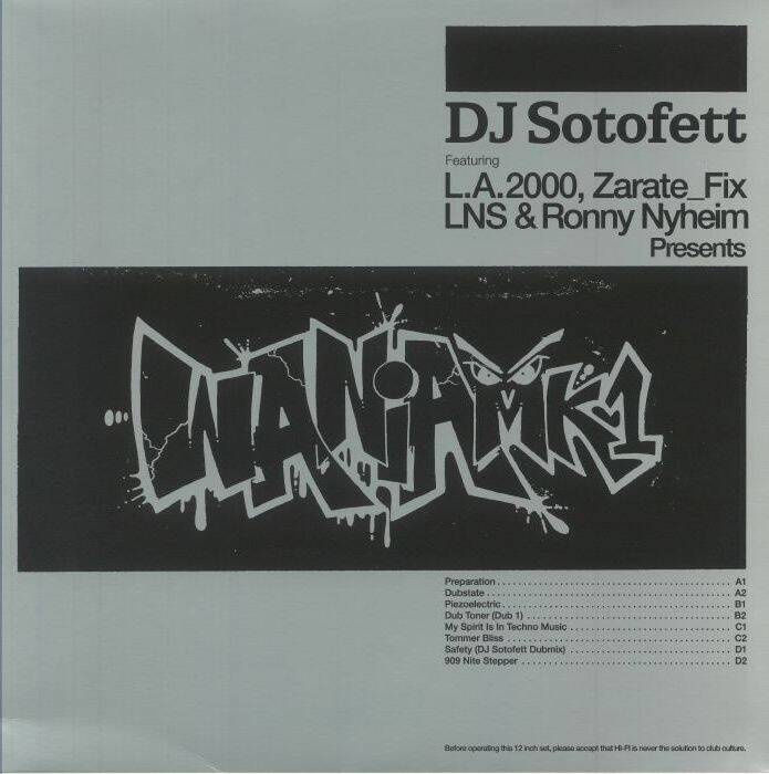 The album features regular collaborators LNS, L.A. 2000, Ronny Nyheim and Zarate_Fix while scanning through a set of tracks designed for DJ Sotofett's resident nights at Berlin's Tresor club. Energy driven Dub-Techno, overtonal and percussive Acid, pumping bassline-riding power Dubs and Deep Techno wraps up this DJ friendly but versatile double pack. The programming, mixing, mastering and cutting on "WANIA mk1" has been perfected for an attempt to resurrect real undeground & no-bullshit club music, strictly for real DJ's and clubbers who passionately loves the core of true Techno music. Includes the bombastically percussive "Preparation" and 909-vocoder driven "My Spirit Is In Techno Music" as well as alternative mixes from the previously released "WANIA mk2".