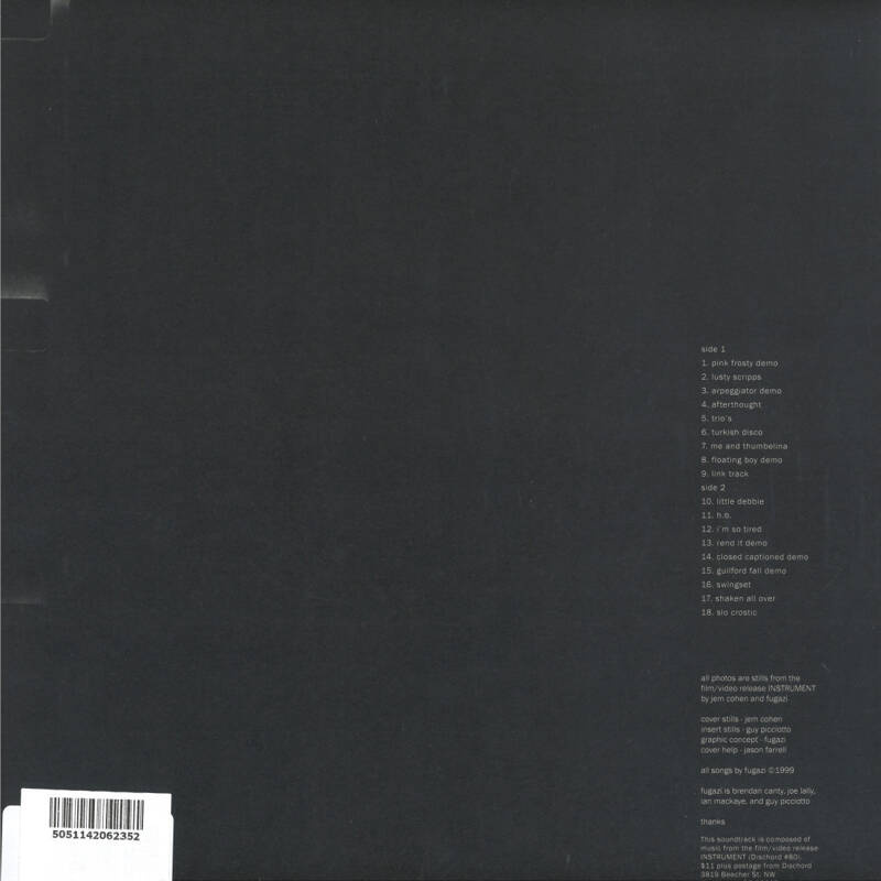 Original music from the film,"Instrument", culled from demos and various sources, by Fugazi from 1988-1998, The 12" LP format was re-cut and re-issued in December 2009. Originally Released: 1999