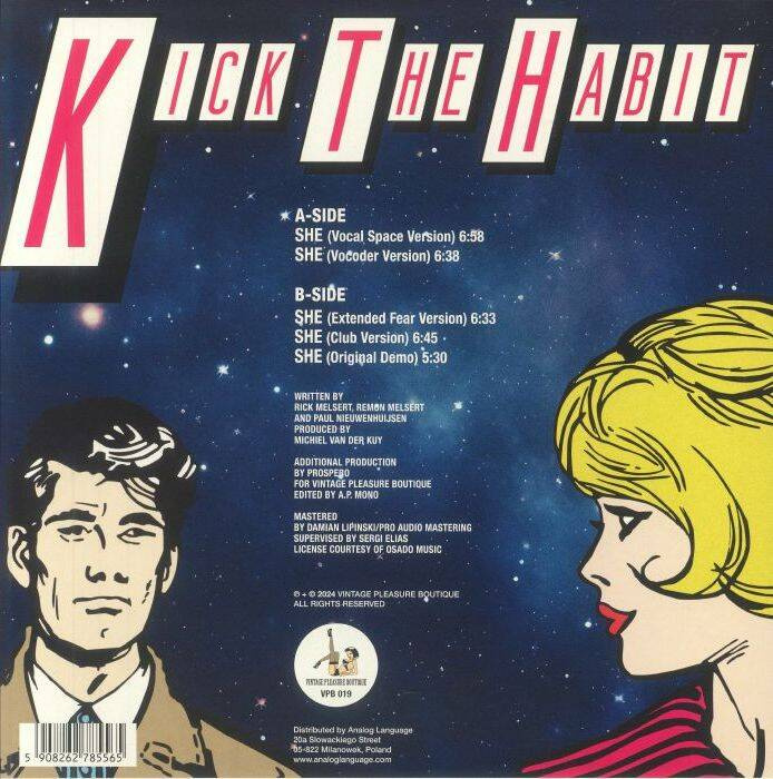 In the late 1980s, three young musicians – Rick and Remon Melsert, along with Paul Nieuwenhuijsen – approached Michiel van der Kuy with a demo titled “She.” Their collaborative project, dubbed Kick The Habit, was poised to blend their talents with Michiel’s signature touch, infused with a hint of early house music. However, for reasons unknown, the project was shelved and remained hidden for over three decades.