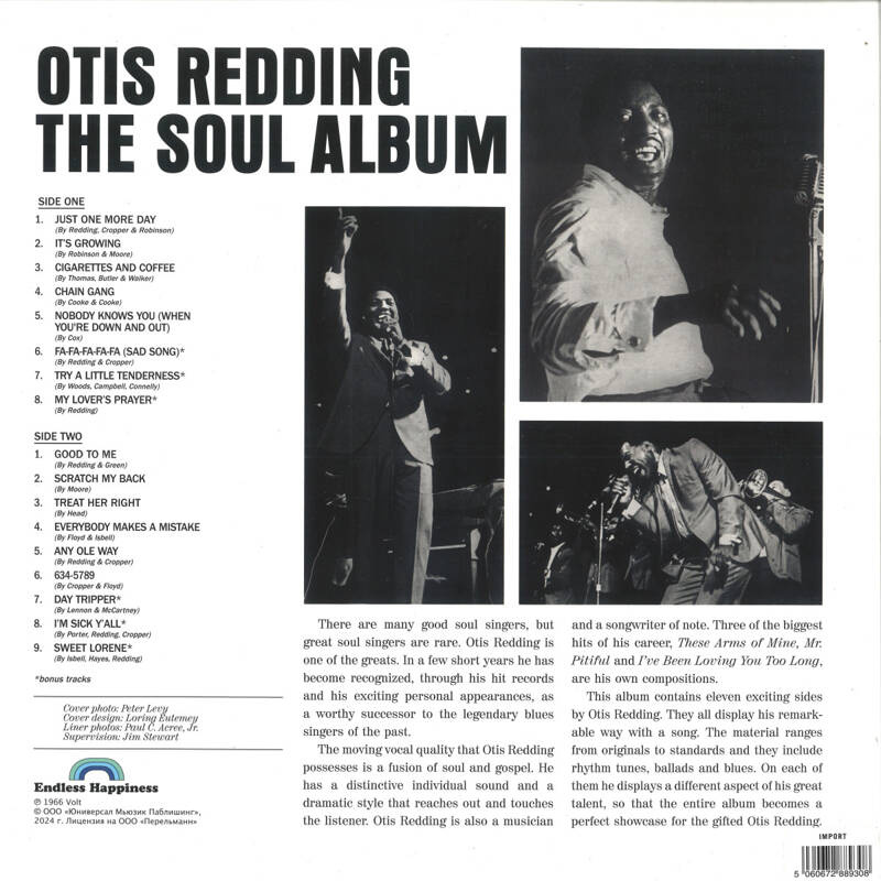 The Soul Album is the fourth studio album by American soul singer-songwriter Otis Redding, released in 1966. It features Redding performing songs that he co-wrote, as well as covers of songs by such musicians as Sam Cooke, Eddie Floyd, Roy Head, and Smokey Robinson. Guitarist Steve Cropper contributed guitar on the album and is also credited as the co-author of three tracks. The Soul Album shows Otis Redding moving from strength to strength in a string of high-energy, sweaty soul performances, interspersing his own songs with work by Sam Cooke ("Chain Gang"), Roy Head ("Treat Her Right"), Eddie Floyd ("Everybody Makes a Mistake"), and Smokey Robinson ("It's Growing") and recasting them in his own style, so that they're not "covers" so much as reinterpretations.