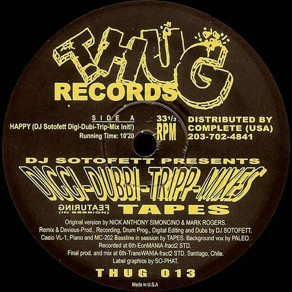 Bumpin across the 12' E.P features 3 remixes and 1 interlude as well as custom label graphics by SO-PHAT aka DJ Sotofett. Recordings based on original versions by Nick Anthony Simoncino & Mark Rogers. Remix & devious production, drum programming, digital editing and dubs by DJ Sotofett. Casio VL-1, piano & MC-202 bassline in session by TAPES. Background vocals by PALEO. Recorded at 6th-EonMANIA-fract2 STD. Final production and mix at 6th-TransWania- fract2 STD, Santiago, Chile.