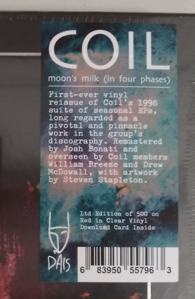 First compiled as a double CD in 2002, Moon's Milk (in Four Phases) is a suite of four EPs that Coil released seasonally via their in-house Eskaton imprint across 1998. The line-up for these sessions were John Balance, Peter "Sleazy" Christopherson, Drew McDowall, and William Breeze. Recorded primarily at their home studio in Chiswick, London on the eve of a permanent relocation to the small seaside town of Weston-super-Mare, the collection has long loomed as a pivotal and pinnacle work in the group's discography, but has never been officially reissued, or repressed on vinyl. Time has only ripened its tapestry of regal strangeness.Arranged sequentially in tribute to the equinoxes and solstices, Moon's Milk captures Coil at a revelatory crossroads, leaning deeper into improvisation, spontaneity, and sound design. "Moon's Milk or Under an Unquiet Skull" initiates the proceedings on Spring Equinox, a two-part netherworld organ séance woven from vocal drones, cathedral keys, seasick strings, and opiated undertow. From there, Summer Solstice skews lighter but no less incantational, with Balance embracing his voice-as-instrument across lucid dream torch songs ("Bee Stings"), purgatorial spoken word ("Glowworms/Waveforms"), sultry chamber pieces ("Summer Substructures"), and falsetto ravings ("A Warning From The Sun (For Fritz)").Autumn Equinox exudes more of a pensive and twilit mood, from the Rose McDowall-sung folk ballad "Rosa Decidua" ("I hear your voice sing near to me / I've put away the poisoned chalice (for now) / And lie down amongst the flowerbeds") to hall-of-lords hallucination "The Auto-Asphyxiating Hierophant" to the liminal string-plucked classic "Amethyst Deceivers," featuring excellent alien guitar by Breeze layered with Balance's oft-quoted couplet: "Pay your respects to the vultures / For they are your future."The album's final chapter, Winter Solstice, is its most swooning, remote, and ceremonial. Opener "A White Rainbow" stirs strings, layered choral vocals, and shivering rhythm into an imploding burial hymn. "North" oscillates bleakly, a ghost in the machine murmuring opaque prophecy ("This black dog has no owner / This black dog has no odour"), while "Magnetic North" is its inverse, a guided meditation of gently flickering software and surreal chakra poetics ("Red rose filling the skull / Yellow cube in the lower pelvis / Silver moon crescent below the navel"). The suite fades to grey with a traditional English carol ("Christmas Is Now Drawing Near"), rendered like an executioner's song by Rose McDowall's doomed, beautiful voice.The Dais box set includes the entirety of the rare Moon's Milk Bonus Disc CD-R / 2019 Threshold Archives CD, which includes three collaborations with Thighpaulsandra. This material is as rich and intoxicating as the previous four phases, ranging from electro-acoustic singing bowl rituals ("Copal") to dissonant electronic recitations of visionary Angus MacLise poetry ("The Coppice Meat") to ominous classical melancholia ("Bankside"). Once again, Coil confirm the vastness of their confounding, infinite alchemy, explored and refined across decades of experimentation - both sonic and bodily. From post-industrial to post-everything, theirs is an art untethered, in the wilds of its own design.