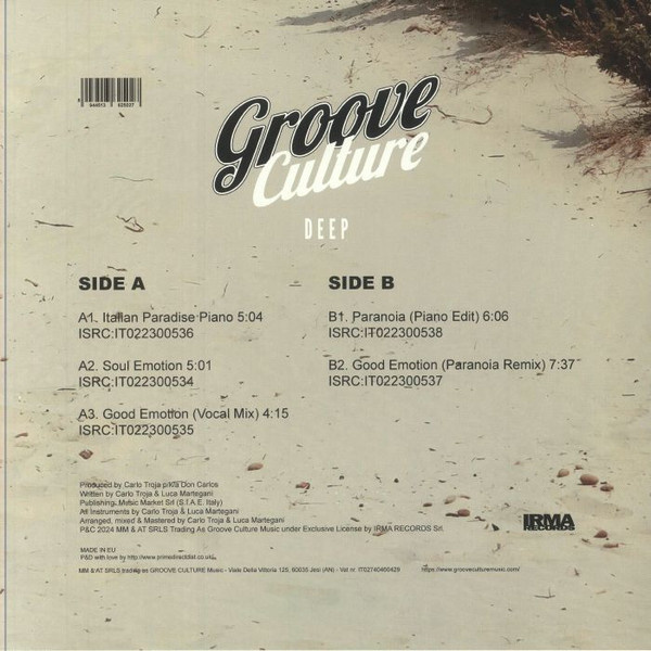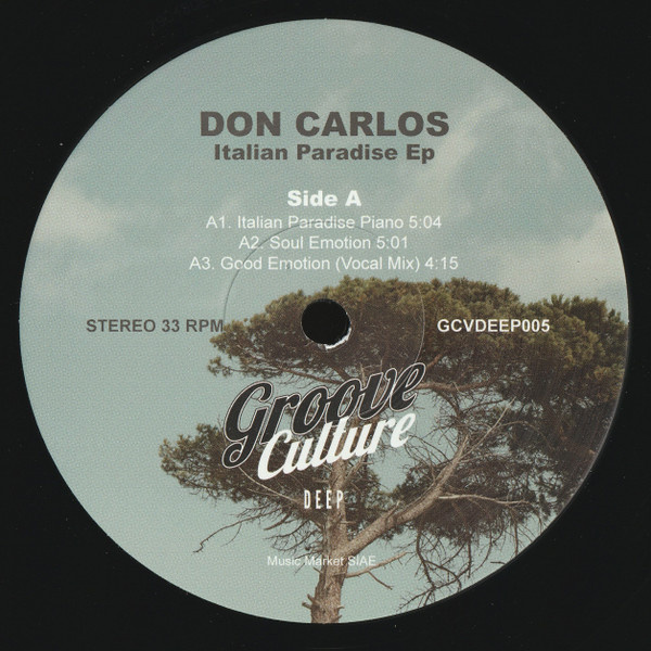 Considered the Master of Italo piano house, Don Carlos is up next on friends Micky More & Andy Tee's label Groove Culture Deep with an EP of Finest Classic Piano house.Features the amazing, warmup Classic House of ‘Italian Paradise Piano’ followed by the Deep heater ‘Soul Emotion' and The Garage Late-night ‘Good Emotion’(Vocal Mix) on the A-side. The flip offers ‘Paranoia’(Piano Edit) and ‘Good Emotion’(Paranoia Mix) both tracks perfectly capture the zeitgeist of house music's golden era of late 80’s early 90’s.