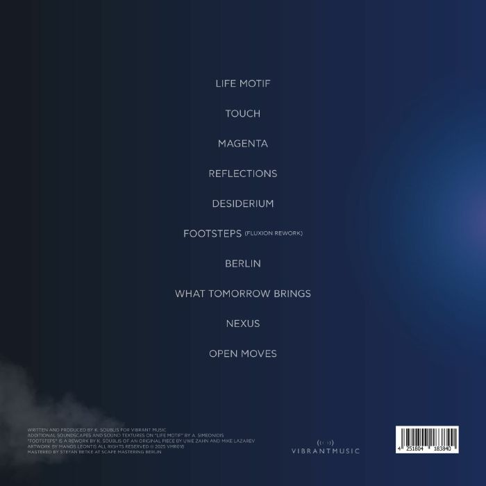 Since his early days at Chain Reaction, K. Soublis (Fluxion) has carved his own unique style, combining elements of dub, ambient, techno, score, textural, and even jazz elements, all glued together with his distinct production aesthetic.
