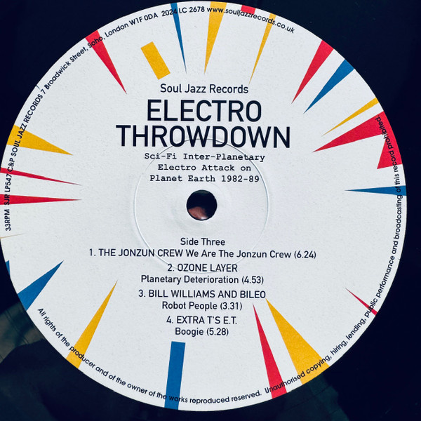 Soul Jazz Records’ new collection, ‘Electro Throwdown - Sci-Fi Inter-Planetary Electro Attack on Planet Earth 1982-89’, is a journey into the outer reaches of electro, a galactic roller-coaster ride of turbo-charged sci-fi grooveology. The album is comprised of mainly private-press and independent label electro jams of the highest calibre (with some as rare as space ships landing on Mars) all created in the 1980s, at a time when a vocoder, a Roland TR-808 drum machine and a groove was all that was needed to get the party started. With a few notable exceptions (Michael Jonzun’s Jonzun Crew and The Packman) the album features mainly under-the-radar killer tracks from a host of one-off artists and back-room electronic pioneers – including Pretty Tony, Planet Detroit (James McCauley, aka Maggotron) and Rich Cason – who together helped shape the sound of electro across the USA from Miami to New York, Los Angeles and beyond during the 1980s.