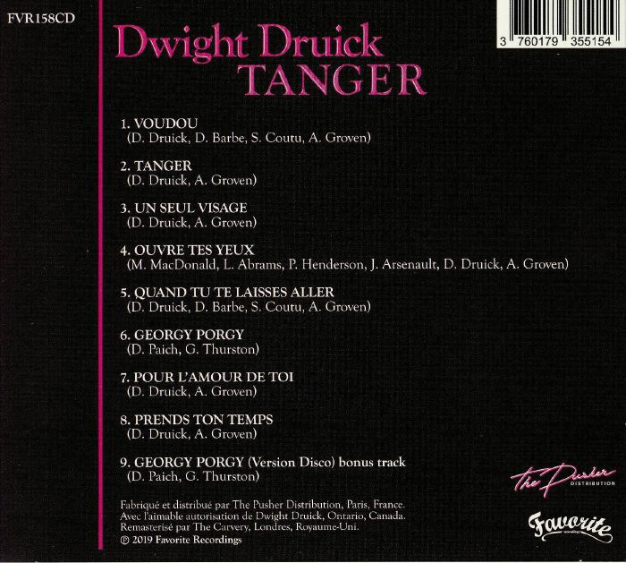 Dwight Druick’s born in Montreal to a professional gambler and an ex-Radio City Rockette. One of five children, he grew up in a family buoyed by music and beleaguered by the vagaries of miscalculated risk. After attaining a McGill University bachelor’s degree in Art History, Dwight fully embraced both music and risk by traveling to London, where he signed a contract with Pye Records and Joe Cocker’s management company. The ensuing record, Druick & Lorange was released to critical acclaim and relative success. After returning to Canada, Dwight recorded two albums with Phil Vyvial: Midnight and Minuit. Recorded with the Muscle Shoals Rhythm Section in Alabama, the duo’s work achieved airplay success in Quebec and across Canada. Dwight subsequently released his first French language solo album, Tanger, released in 1980 by the Canadian label, Bobinason. Today quite hard to find in its original version, Tanger is first of all an incredibly solid album, clearly underrated and deserving more credit. Mostly known by collectors and DJs for the stunning cover of Toto’s classic hit, “Georgy Porgy”, which was produced and arranged with the help of George Thurston (Boule Noire), it includes many other tasty titles, with amongst them another fine rendition of “Open Your Eyes” by The Doobie Brothers. In fact, with its brilliant mix of Modern-Soul, Disco and AOR styles, the whole album is already considered by many connoisseurs as a classic, and clearly a must have for anyone enjoying this musical blend. Never reissued on vinyl until now, there was not much more needed at Favorite Recordings to make it happened. Officially licensed to Dwight Druick, who was unfortunately not able to provide the original tapes, Tanger has been perfectly restored and remastered by Frank Merritt, at The Carvery, London. CD and digital edition will also come with “Georgy Porgy (Version Disco)” as a bonus track.