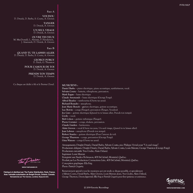 Dwight Druick’s born in Montreal to a professional gambler and an ex-Radio City Rockette. One of five children, he grew up in a family buoyed by music and beleaguered by the vagaries of miscalculated risk. After attaining a McGill University bachelor’s degree in Art History, Dwight fully embraced both music and risk by traveling to London, where he signed a contract with Pye Records and Joe Cocker’s management company. The ensuing record, Druick & Lorange was released to critical acclaim and relative success. After returning to Canada, Dwight recorded two albums with Phil Vyvial: Midnight and Minuit. Recorded with the Muscle Shoals Rhythm Section in Alabama, the duo’s work achieved airplay success in Quebec and across Canada. Dwight subsequently released his first French language solo album, Tanger, released in 1980 by the Canadian label, Bobinason. Today quite hard to find in its original version, Tanger is first of all an incredibly solid album, clearly underrated and deserving more credit. Mostly known by collectors and DJs for the stunning cover of Toto’s classic hit, “Georgy Porgy”, which was produced and arranged with the help of George Thurston (Boule Noire), it includes many other tasty titles, with amongst them another fine rendition of “Open Your Eyes” by The Doobie Brothers. In fact, with its brilliant mix of Modern-Soul, Disco and AOR styles, the whole album is already considered by many connoisseurs as a classic, and clearly a must have for anyone enjoying this musical blend. Never reissued on vinyl until now, there was not much more needed at Favorite Recordings to make it happened. Officially licensed to Dwight Druick, who was unfortunately not able to provide the original tapes, Tanger has been perfectly restored and remastered by Frank Merritt, at The Carvery, London. CD and digital edition will also come with “Georgy Porgy (Version Disco)” as a bonus track.