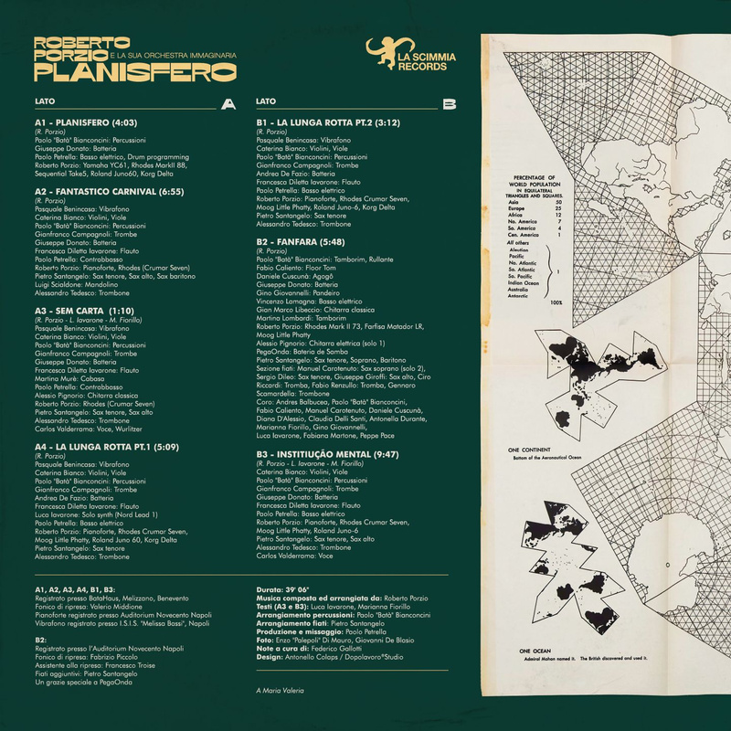 Renowned Neapolitan keyboardist and composer Roberto Porzio (Parbleu, Psyché, Fitness Forever, The Funkin' Machine and others) makes his highly anticipated solo debut album with Planisfero - a breathtaking sonic journey where tropical rhythms, Mediterranean lyricism, and cinematic orchestrations collide, shaping an intimate and personal musical landscape. Planisfero blends salsa, samba, and vintage sound library aesthetics with the bold energy of an imaginary Afro-Cuban orchestra. Entirely written, arranged and composed by Roberto, the album is recorded completely live, with no digital shortcuts, becoming a manifesto to pure musicianship and analog authenticity - a rare gem in an era of synthetic production. Step into a new musical geography - where imagination knows no borders.
