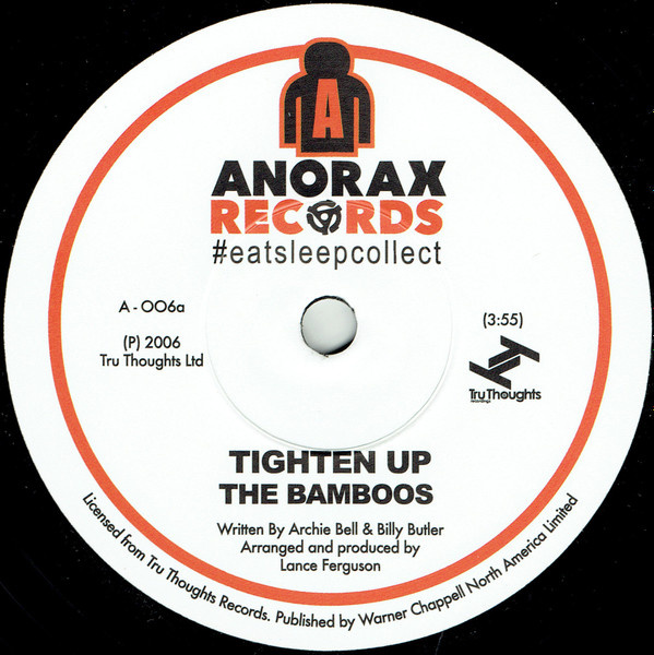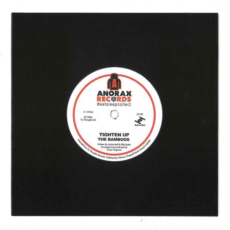 ANORAX sticks to its’ #eatsleepmantra with the reissue of the perennially in demand TIGHTEN UP by Melbourne soul disciples THE BAMBOOS. The track - a catchy as you like instrumental slant on Archie Bell & The Drells USA #1 million selling smash from 1968 - was originally released in 2006 on Kenny Dope and Keb Darge’s KAY-DEE label. It immediately became a favourite in Soul & Acid Jazz circles, and it’s’ popularity rapidly spread across all dance genres, THE BAMBOOS main man LANCE FERGUSON showed genius by ditching the idea of vocals and lyrics in a composition hailed by Rolling Stones magazine “as one of the greatest songs of all time” and instead coming up with the quirky irresistible instrumental we all love. Funky flute anyone? The Kay Dee 45 was reissued some years ago but enduring demand has outstripped supply. Limited edition press so grab em while you can….