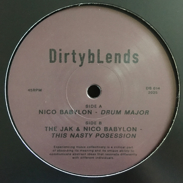 The Jak and Nico Babylon have been busy and have two split EPs dropping on the Dirty Blends label this month, and both are grimy house workouts. Dirty Blends presents a loose early house 12" with two standout tracks. First up is new associate Nico Babylon with a hypnotic, conceptual production built around vintage synths and syncopated rhythms that push jakbeat to the next level with meticulous craftsmanship. On the flip, 'This Nasty Possession' is a collaboration between The Jak and Nico, rooted firmly in the mid-80s Chicago underground sound, inspired by the Gherkin and Gene Hunt era. Every element was handcrafted with no samples used, thereby preserving the authentic, old-school vibe to perfection.