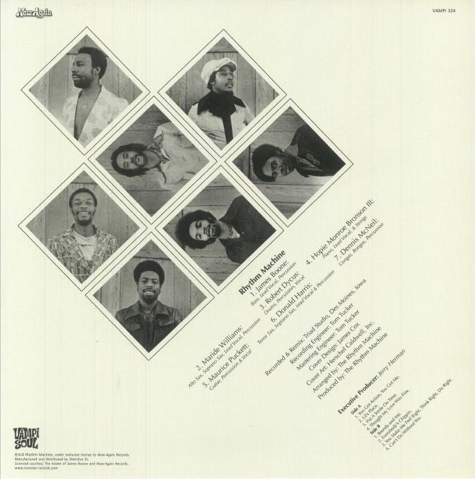Indianapolis' Rhythm Machine released their sole self-titled album in 1976, marking a rare bridge between late 60s and mid-70s funk eras. Formed by bassist James Boone and guitarist James Brantley from the ashes of cult group The Highlighters, the band delivered a blend of tight, soulful grooves, dynamic horn lines, and a fluid jazz digest. Its vibe flirts with Earth, Wind & Fire's elementalism, but drifts into looser, cosmic territories away from terrestriality, where dreamy synths and shimmering guitars float atop liquefied production. A soprano sax cuts through with a sharp edge: originally a tough find, this reissue from Now Again revives a funky, soulful journey ripe for chill late-night bar spins or for collectors seeking overlooked classiques.