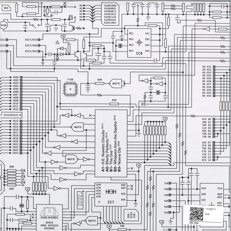 Hackney Electronica is a collective of underground stalwarts who came together during COVID. It comprises the mad prolific Quinn Whalley of Paranoid London, Warmduscher and Decius, as well as Unai Trotti from Cartulis Music and Margo Broom of Hermitage Working Studios. They deal in acid-laced sounds which are a perfect fit for Dark Entires and here explore twisted late-night club sounds that are alluring yet austere. As their name suggests, they capture the vibe of Hackney's backstreets in their music with 'H.E. Nuestro Circuito' and 'Whispers from the Depths' bringing 1980s DIY electronics to a contemporary dancefloor, while 'Efecto Perfecto,' 'The One' and 'Nueva Ola' deliver potent electro powered by big breakbeats. It's a superb EP of tension and transcendence.