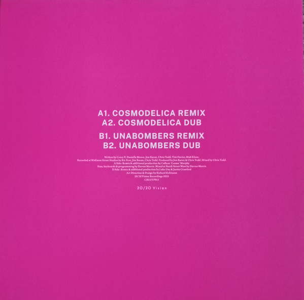20/20 Vision marks its 30th anniversary with another great release here in the form of some remixes of Crazy P's iconic single 'Stop Space Return'. The late Danielle Moore's unmistakable vocals shine across two stellar reworks from Colleen 'Cosmo' Murphy who infuses her cosmic, acid-laced disco energy into the track. Her Cosmodelica Remix and Dub version blend trippy 303s, cowbells and deep grooves into something suitably fresh. Also included are two classic Unabombers mixes from 2009, and they offer raw house heat and dubbed-out psychedelia that serves as a fine floor-focused reinterpretation of a beloved anthem.