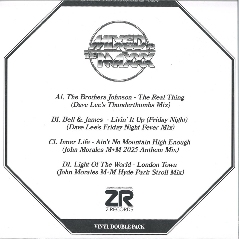 For their landmark 400th release, Z Records lines up two of the most prolific remixers in the world of disco, Z boss Dave Lee and John Morales, teaming up for one of their biggest projects to date. After gaining access from the legendary original artists, these two esteemed producers took the multitrack tapes of a host of disco, funk and soul tracks and re-worked them - To The Maxxx! Here we're treated to a double 12" sampler of the forthcoming album, expected later this year, with the bass twanging floor filler version from Dave Lee of The Brothers Johnson's 'The Real Thing', already causing a stir in his DJ sets of late and featuring lots of musical parts not audible in the original. Following that comes Dave's Friday Night Fever Mix of Philly legends Bell & James' US chart hit "Livin' It Up (Friday Night)', where he beefs up and extends the original to re-step back out on the town, a masterclass in elevating something that's already great to start with. On the second 12", we have John Morales taking on a biggie in the shape of Inner Life's 'Aint No Mountain High Enough'. Here, John handles the prestigious parts with the respect due, re-shaping key moments in a new light and bringing the sonics up to par for modern dancefloors, an Anthem Mix indeed. To finish proceedings, Morales takes on British jazz-funk band Light Of The World with their much-loved classic 'London Town', bumping the tempo a touch and beefing up the funk.