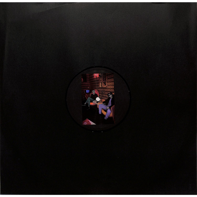 Satoshi Tomiie and Tomoki Tamura present their latest EP 'Dream Sketches' for Berlin's Abstract Architecture label. A surreal blend of rattling dub echoes and beat crabs, the pair are seen sat in a recollective room of strange patterns, their skin greyed but facial expressions confident, matching the uncanniness of the EP, littered with both sonic funky foliage and dubious demurrals. 'Dream Sketches' and 'Bounce 60' sound like CAD explosions transposed into abstract sonic space, but theirs is an impossible architectural project, which makes cool noises nonetheless. 'Lost Keys' and 'Bahnhof 120' do rigidify things somewhat, but do not lose that trademark surrealism, that sense of jank.