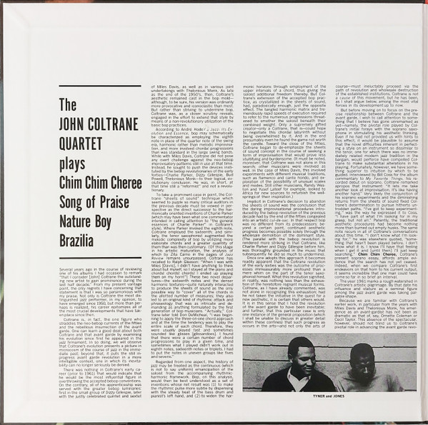Just months after the landmark A Love Supreme session in December 1964, John Coltrane led the classic quartet - McCoy Tyner on piano, Jimmy Garrison on bass, and Elvin Jones on drums - through a set that captures the pivot into his final, more liberated phase. 'Chim Chim Cheree', plucked from Disney's Mary Poppins, becomes a hypnotic modal vamp, stretched into near-transcendence. The 13-minute 'Brazilia' rides a relentless swing, opening space for Tyner's sparkling runs and Coltrane's increasingly abstract flights. 'Nature Boy' brings in Art Davis on second bass for a brooding, slow-burn exploration, while 'Song of Praise' closes with spiritual fervour, its theme rising like a hymn from the maelstrom. It's an essential document of Coltrane embracing freedom without losing the deep lyricism that anchored his sound.
