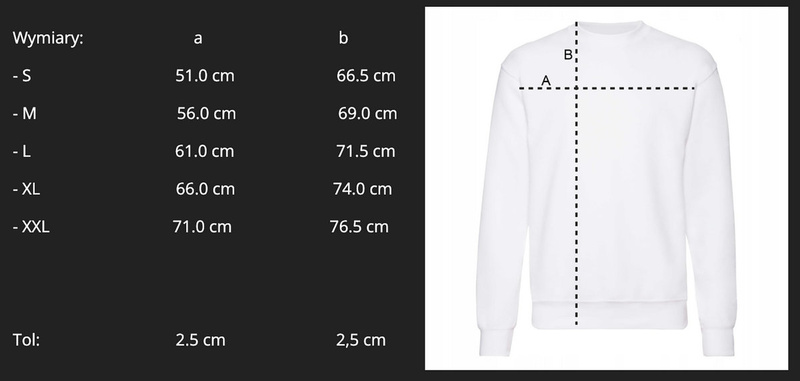 Biała bluza custom made (sitrodruk) z logo Superkasety z przodu na piersi i dużym logo na plecach. Logo w kolorze czarnym. Bluza wysokiej jakości szczotkowana dzianina 70% bawełna (z certyfikatem oeko tex) i 30% poliester klasycznej merchowej marki Fruit of the loom. Prążkowane 1x1 ściągacze na rękawach i dole bluzy, okrągły dekolt crewneck. Certyfikat Fair Working Conditions. Dostępne rozmiar S-XXL. Dokładne wymiary na ostatnim zdjęciu.