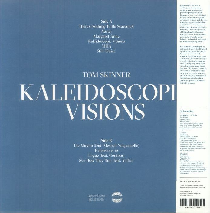 Kaleidoscopic Visions unfolds across two distinct sonic landscapes. Side A presents entirely instrumental compositions performed by Skinner's live Bishara band - bassist Tom Herbert, cellist Kareem Dayes, and Robert Stillman and Chelsea Carmichael on various woodwinds and reeds—with electric guitar on two tracks courtesy of Portishead's Adrian Utley. A drummer-composer bringing his wealth of experience to bear on the role of bandleader, Skinner composed primarily on guitar, embracing the freedom that came with writing on his secondary instrument. These compositions include "Auster," dedicated to late novelist Paul Auster, and "Margaret Anne," which honours Skinner's mother Anne Shasby, a former classical concert pianist prodigy who abandoned her own promising career in the face of systemic misogyny, only to impart on her son what Skinner calls "the gift of music."