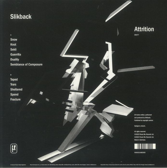 Slikback releases "Attrition" - a densely detailed, cinematic exploration of sound packed with intricate rhythms and gleaming textures. Slikback’s "Attrition" marks his first full-length album for Planet Mu, delivering an immersive melding of cinema and game sound design with tough dance music. It's like a sci-fi film for the ears, exploring a chain of events with dark atmospheres and dramatic pacing; trapdoors and jump scares for your ears. These contrasts and the dense painterly colour of his sounds give it a beastly beauty. The album came to life during a period of transition, while waiting for a visa after recently moving to Poland from Kenya, where he grew up. With this unexpected pause in travel, Slikback found himself working at a slower, more deliberate pace. Writing for a label instead of self-releasing also introduced new dynamics, like feedback and structured release schedules. Rather than feeling restricted, he saw this process as a blessing. In a happy and reflective headspace - newly married and welcoming a newborn child - he was able to fully develop his compositions. “I was finally able to explore ideas to a point where I didn’t feel the need to change anything,” he shares. "Attrition" is the result of that creative freedom. While "Attrition" nods to familiar genres, drawing on elements of Gqom, Dubstep, Tech-Step, and Hardcore Techno, it pushes them into new territory, shaping high-tech, intricate compositions. “I worked on the tracks back and forth, drastically transforming some from their original sketches,” Slikback explains. “I wanted to create a journey within each track, like something alien emerging from emptiness - beauty from chaos.” The album opens gently before diving into fast-paced 140bpm sounds, reminiscent of earlier Planet Mu releases. Midway through, "Taped" shifts the energy with a shimmering, 160bpm rolling bassline. As the album progresses, its intensity builds. The music grows darker, faster, and more unpredictable, culminating in a final track that bursts apart in a thrilling, chaotic climax. A standout moment in Slikback’s career, "Attrition" is a masterclass in sound design and vision. Strange yet beautiful, intense yet rewarding - it’s the most strikingly unique album you’ll hear all year.