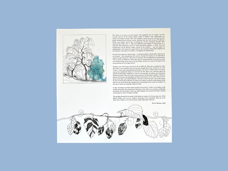 Splicing raw field recordings of around 35 animal species with acoustic drones, reeds, and distant modular flickers, Barycz occupies a deeply uncategorisable zone between fourth world ritual, eco-acoustic composition, and post-human ambient. Birdsong, amphibian croak and insect chatter are left untouched, arranged with uncanny sensitivity into a sound world where non-human voices lead and human elements follow.
