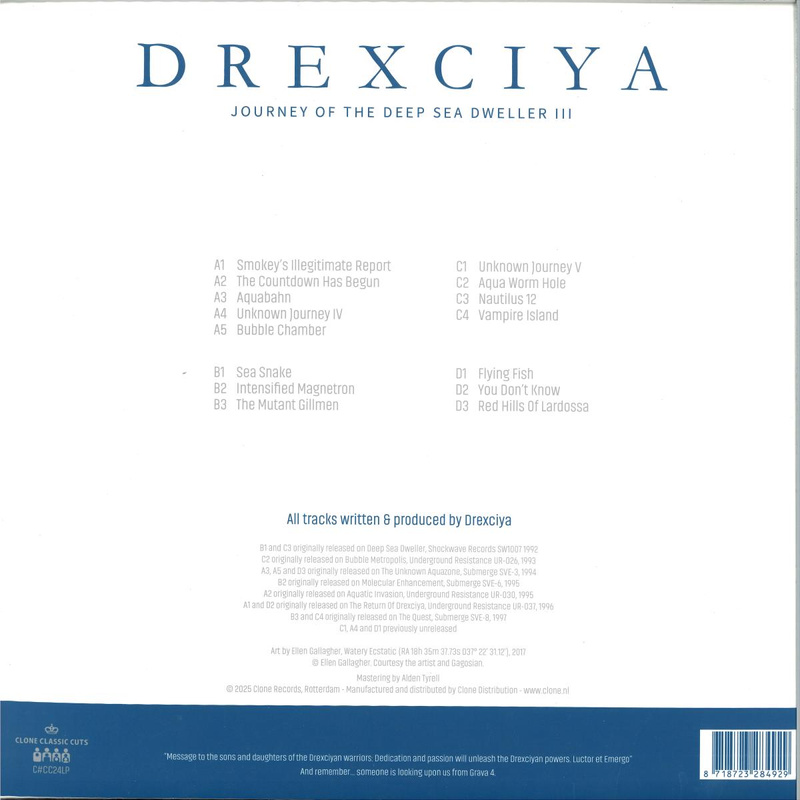 Part 3 of the Drexciya re-issue series! A new repress of the Journey Of The Deep Sea Dweller series by Drexciya!! It comes with new artwork by critically acclaimed American artist Ellen Gallagher.