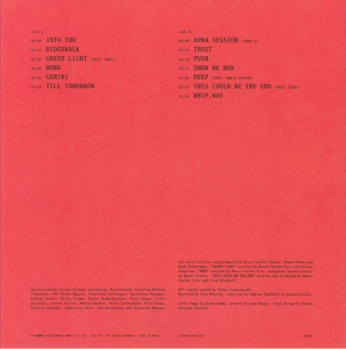 Berlin's Moses Yoofee Trio return with their first new material since 2023's Ocean. Recorded over ten days at Glaswald Studios in April 2024, with two additional tracks finished at Leiter's Funkhaus studio in Berlin, the album is available on vinyl. Produced with long-time collaborator oh.no.ty, the standout track 'WHIP.wav' showcases their sophisticated jazz, driven by Moses' fluid piano lines, Noah Furbringer's deft drumming, and Roman Klobe-Baranga's understated bass. The trio's minimalist approach distills their sound to its essence, letting their prodigious talents shine, focusing on "emotions, moments, and bangers."
