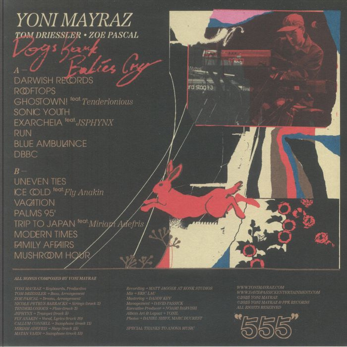 Tel Aviv-born, London-based keyboardist and producer Yoni Mayraz steps forward with his most ambitious work yet, a heady blend of live improvisation and deep studio craft. Backed by longtime collaborators Tom Driessler on bass and Zoe Pascal on drums, he recorded at North London's legendary Konk Studios, letting the room's dark wooden acoustics shape every note. The record moves between 90s hip-hop swing, Middle Eastern melodic threads, and 70s jazz-funk textures, tied together by Mayraz's lyrical keys. Guests add extra colour: Tenderlonious lights up 'Ghostown!', Fly Anakin spits sharp verses on 'Ice Cold', while JSPHYNX and Miriam Adefris bring haunting depth to 'Exarcheia' and 'Trip to Japan'. It's daring, restless and richly expressive.
