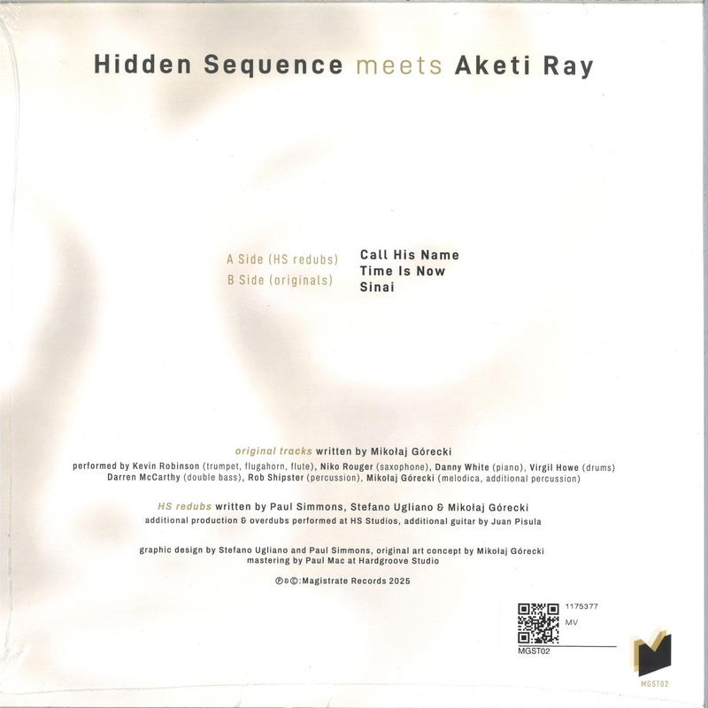 London-based Aketi Ray are all-acoustic dub-jazz dons that blend double bass, drums, upright piano, horns and percussion into original compositions rooted in post-independence Jamaican instrumental traditions. Their sound also weaves in Ethiopian jazz, West African percussion, US jazz influences and UK Steppas vibes. Here they join up with Koln, Germany duo Hidden Sequence, regulars on the likes of Mosaic and Lempuyang. 'Call On His Name' is flute lead and liquid dub, 'Time Is Now' has a mystic quality and moody sax lead, then 'Sinai' brings slowly unfurling melodies and lovely woodblock hits that echo away to infinity. Alternate versions on the flip make this a timeless excursions into endless dub depths.