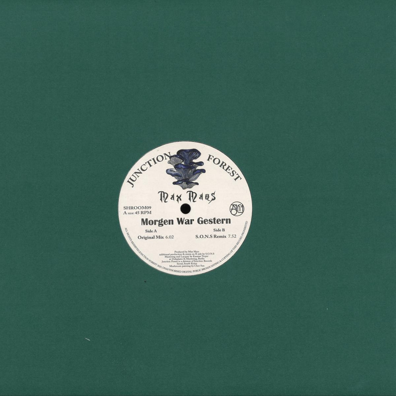 Junction Forest - a psychedelic-Seoul dance music imprint run out the mail-order backroom of the city's very own favourite dance-on-vinyl stop Junction Records - channel the god within for another classic proto-goa trance topup. Here they embark on a mission to Max Mars: the Dusseldorfian producer has returned in 2025 after nearly two decades out the game, when in 2006 he left off on three knockout releases on Electyle. Now after 2025's master frazzler 'Plymbo' comes 'Morgen War Gestern', a two track EP packed with home-recorded voices and fizzing shakedowns; one original, and one from fellow artist SONS.