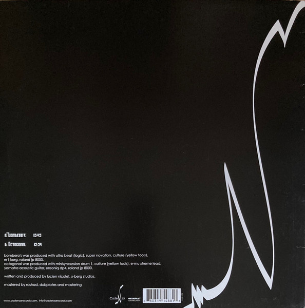 Written and produced at X-Berg Studios. Bombero's was produced with Ultra Beat (Logic), Super Novation, Culture (Yellow Tools), ER1 Korg & Roland JP 8000. Octogonal was produced with Minisyncussion Drum 1, Culture (Yellow Tools), E-Mu Xtreme Lead, Yamaha Acoustic Guitar, Ensoniq DP4, Roland JP 8000. Made in EU.