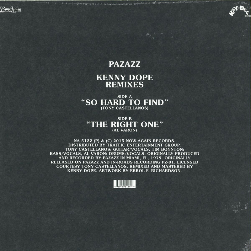 Late '70s Deep Miami Disco Remixed by Kenny Dope. Includes Download Card For Remixes AND Original Versions. This is the first official reissue of Pazazz's deep disco two sider, originally released as an obscure, promotional-only 7' single in South Florida circa 1980. And, while it took nearly two years, this 12' contains the excellent Kenny Dope's remixes of both tracks. Naturally, Kenny brought the funkiest parts of each track to the fore and, while they're DJ friendly, they're now our preferred way to listen to these tunes. We're using this as an excuse to relaunch our Soul Cal series (though fans of our physical releases will note that there was a Soul Cal logo on the Split Decision Band 7" we recently issued). Hopefully we'll have more of these types of records to reissue in the future. Tony Castellanos (guitar and vocals) and Tim Boynton (bass and vocals) founded the Zanzibar band in Miami, Florida, in 1974 for gigs at the Bahia Cabana Hotel in Ft. Lauderdale, with the addition of Rick Gritz (drums and vocals). Inspired by the likes of Bill Withers and Steely Dan, Zanzibar played a soulful series of club dates and private parties as well as a their requisite beach hotel gigs at Miami area staples like the Fontainebleau, the Eden Rock and the Marco Polo hotel. In the late 70s, Castellanos changed the name of the band to Pazazz and, while the band was working for the Norwegian Cruise Line, he penned the band's first single So Hard To Find.' This and The Right One,' written by interim drummer Al Varon, who played on the single, were recorded and readied for release on a silver Pazazz label, complete with picture sleeve. It wasn't until Castellanos received five hundred copies of the single that he realized that the record was flawed. He demanded a second press run - this time issued on a red Pazazz label - but it too was, in Castellanos opinion, flawed. So the band decided against any sort of release, opting to gift copies of both versions to fans at their gigs.