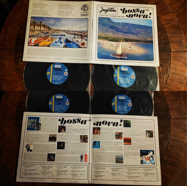 In the whirlwind of various musical styles, Latin American music still played important part of the scene in the early sixties Yugoslavia. Beguine, tango, rhumba, samba, calypso, mambo and cha-cha-cha all found their place on the festivals inspired by famous Sanremo, festival of Italian popular song that largely shaped the musical taste of Europe. It was the era of instrumental rock, R & B and rock'n'roll - sounds of "imperialist America" now played freely on imported and hand-made electric guitars. While dancing halls had been turning into concert venues, bossa nova has come! Eydie Gorme with Blame It on the Bossa Nova and Paul Anka with Eso Besso (That Kiss!) tried to make us learn some new dance moves but it was Joao Gilberto's gentle singing and his new way of playing samba songs, along with Tom Jobim's modern dissonant harmonies and poetry of Vinicius de Moraes that created the magic. When American alto saxophonist and flautist Bud Shank visited Zagreb and Ljubljana in 1963 (with Boško Petrović in his quintet) "it was the first time we heard bossa nova!" remembers Stjepan Braco Fučkar. Jugoton, the biggest record company in Yugoslavia, released 4-track EP Bossa Nova by Bogdan Dimitrijević and his ensemble that same year! While not being fully accepted or understood completely, the archives of Jugoton reveal to us various interpretations of this new trend from their vast catalogue.