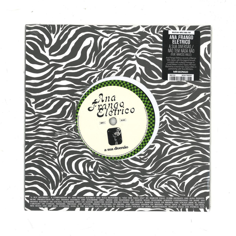 Ana Frango Eletrico teams up with Brazilian legend Marcos Valle for a dazzling two-tracker that bridges generations with flair. 'A Sua Diversao', co-written with Tuca Monteiro and co-produced by Guilherme Lirio, is a laid-back funk jam steeped in 80s sheen - sumptuous bassline, strutting guitars and cosmic synths wrapped around Ana's unmistakable vocal. Guest harmonies from Dora Morelenbaum, Valle and Patricia Alvi only add to its sultry glow. Flip it and the pair rework Valle's 1973 gem 'Nao Tem Nada Nao', with Ana duetting alongside Valle on Rhodes. Midway, it morphs brilliantly into Crystal Waters' 'Gypsy Woman (She's Homeless)', a playful, floor-ready twist that captures the spirit of Ana's live shows. Nostalgic yet inventive, this release proves both artists know exactly how to keep Brazilian funk future-facing.